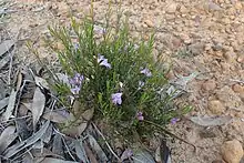 Hemigenia teretiuscula is a species of flowering plant in the family Lamiaceae and is endemic to the southwest of Western Australia. It is an upright, glabrous shrub that typically grows to a height of 10–80 cm (3.9–31.5 in), the leaves about 1 mm (0.039 in) in diameter, more or less tapering cylindrical and somewhat sharply pointed. Flowering usually occurs from August to December and the flowers are bluish-purple.[2][3]