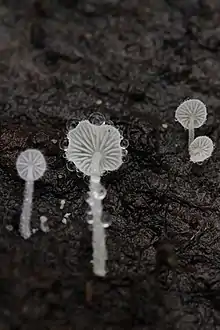 Hemimycena tortuosa, commonly known as the dewdrop bonnet, is a species of basidiomycete fungus of the family Mycenaceae, of the order Agaricales.[1][2]