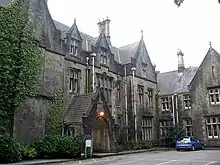 The main feature on the campus is Hendrefoelan House, a large private house built in 1853 by William B. Colling for Lewis Llewelyn Dillwyn (1814-92) then the Member of Parliament for Swansea[1] and home for many years to his daughter, the novelist and industrialist Amy Dillwyn.[2] The house housed the South Wales Miners' Library from the 1980s until 2006, when it was moved to the Coach House, also on the campus.[3] It also formerly housed the Adult Education Department of Swansea University, but is now derelict.