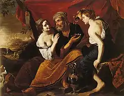 In later compositions de Somer reflects influences deriving from the example of other Neapolitan masters who asserted themselves in those years, such as Massimo Stanzione and Bernardo Cavallino. Hendrick's palette moved gradually away from the tenebrism of Ribera and opened up to the neo-Venetian color, which in that period came to replace the chiaroscuro of the Caravaggisti.[6] Works like his multiple versions of Lot and his daughters and his Samson and Delilah are examples of this evolution.[12]