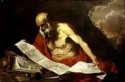 A work with a certain later date is the Saint Jerome reading of 1652 (Rome, Galleria Nazionale di Palazzo Barberini). De Somer created many paintings of the saint, as did his master de Ribera who had popularised this theme.[7]