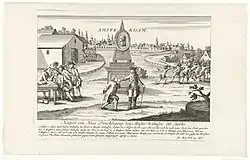 On 1 February 1787 Hooft was elected first burgemeester (of three) of Amsterdam for the sixth time in his life. His colleagues were Willem Gerrit Dedel Salomonsz and Marten Adriaan Beels, also States Party regenten, though more conservative than he. The States party in Amsterdam was riding high, as in 1786 many of their objectives had been reached, especially the weakening of the power of the stadtholder William V.[4] He had been deprived of his office of Captain-General of the Dutch States Army in October 1786 by the States of Holland. In 1785 he had already lost the command of the garrison of The Hague (where the States of Holland and the States General of the Netherlands both resided), but the loyalty of the mercenary troops in The Hague was questionable. Therefore, the leaders of the Patriot faction in the States of Holland, the pensionaries Adriaan van Zeebergh and Cornelis de Gijselaar, had proposed that the so-called "Legion of Salm"[Note 2] would be put in garrison in that city as additional assurance. This controversial proposal had been referred to the Holland cities under the doctrine known as last en ruggespraak (mandate and consent), and Amsterdam held the balance in the States of Holland. It was therefore the first important issue the Amsterdam vroedschap had to decide on under Hooft's chairmanship. The majority of the council looked askance at the proposal, but there was a strong popular appeal for it under the population and by mid-February Hooft was given a petition in favor of the proposal, signed by 3115 citizens. Hooft assured their representatives that the matter was in hand.[5]