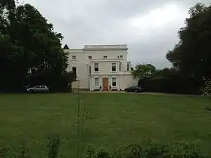 Henley Park house is in a small park north of the Fair Mile that leads north-north-west from Henley. It was the dower house to Fawley Court. In the Georgian era the park was converted into a landscape garden with "beautiful inclosures descending in natural waving slopes from the house."[2]