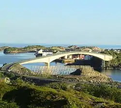The Henningsvær Bridges (Norwegian: Henningsværbruene) are two box girder cantilever bridges made of prestressed concrete.[1][2] The bridges connect the fishing village and island of Henningsvær to the rest of Vågan Municipality on the main island of Austvågøya in Nordland county, Norway.