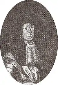 ![]() Duke Henry of Saxe-Römhild as a general in armor with a baton and wig, engraving by Peter Schenk the Elder, today in the Kupferstichkabinett, State Art Collections Dresden, Dresden | |