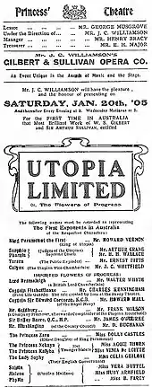 - ↑ Moratti, Mel. "Theatre in Melbourne 1889", Archived 11 October 2007 at the Wayback Machine Gilbert and Sullivan Down Under, accessed 20 February 2010