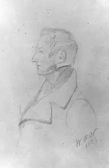 Henry Charles Angelo the Younger in a pencil drawing by W.H. Nightingale, 1839. National Portrait Gallery, London.[1]