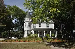 Henry E. and Ella M. (Knott) Nicolaus House, also known as the Samuel G. and Mary Kelley House and the Rebeckah Allgood Residence, is a historic building located in Wilton, Iowa, United States. The house was already on this property when Henry Nicholas bought it in 1896.[2] Nicolaus was a prominent local businessman and civic leader who represented Muscatine County in the Iowa House of Representatives. He and his wife Ella had the Queen Anne elements added to the house in 1898. The house features a three-story corner tower, prominent front porch, two balconies, and a stained glass window on the main facade. It was listed on the National Register of Historic Places in 2017.[1]