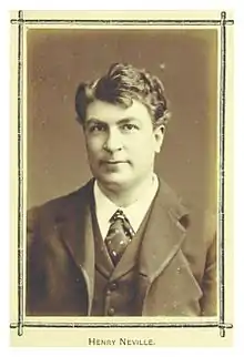 Neville was born in Manchester, England, son of John Garside Neville and his second wife Mary Anna, née Gartside (died 1895).[1] He was the twentieth child of his father, an actor and the manager of Queen's Theatre, Spring Gardens, Manchester, who himself was the twentieth child of his father.[2] Though Neville senior was in the theatre, there were strong military traditions on both sides of the family, and John Neville was opposed to his son's decision to pursue a theatrical rather than a military career and refused to help him.[3] Neville had one brother, George (born c. 1839), one sister, Josaphine (c. 1838–1895), and nineteen half-brothers and sisters.[4]