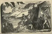 In early 1730 he attacked the 18-gun, 25-man John and Anne[lower-alpha 2] near Jamaica. The two vessels fought a five-hour running battle before the John and Anne surrendered.[6] Johnson's pirates boarded and looted the John and Anne, threatening to hang its crew for daring to resist.[4] Johnson forced his crew to stand down, and they agreed to maroon several of the prisoners instead. Johnson also intervened when Poleas tried to rape the pregnant wife of the ship's doctor, who had been killed in the fighting.[4] Despite his fearsome reputation, he gave her back her clothes and belongings and promised her protection.[1]