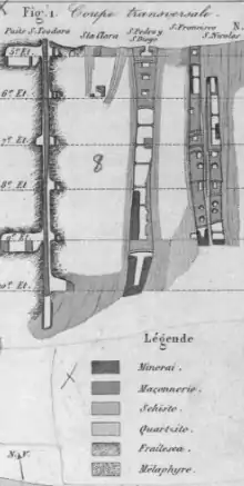 The editors of the Encyclopédie théorique et pratique des connaissances civiles et militaires wanted to add a treatise on exploitation of mines. Henry Küss collaborated with Lucien François Fèvre (1862–1935) on this work, whose first instalment was published in July 1897. It was to have 15 major chapters, but was incomplete at the time of Küss's death in 1914. In fact, he was only able to write the 100-page section on mining geology at the start of the work.[2] Jules Aubrun was made an administrator for the mines in the Arras Mineralogical District in the aftermath of the Courrières mine disaster of 10 March 1906. He came to the attention of Henri Küss and Lucien François Fèvre (1862–1935), and worked with them on their work on exploitation of mines.[7]
