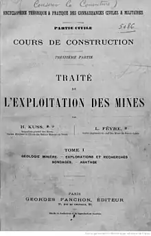 - Henri Kuss (1908), Traité de l'exploitation des mines, Paris: G. Fanchon , DL