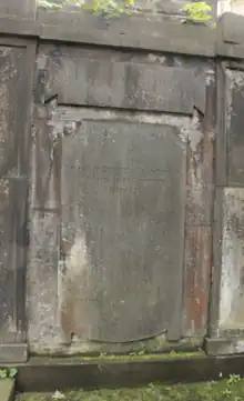 He died at Bruntsfield Links on 9 August 1827 following a long illness (compounded by the death of his wife).[4] He is buried in the north-west corner of the northern section of St Cuthbert's Churchyard.