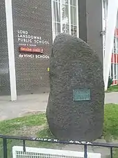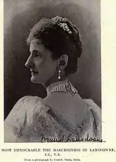 Lansdowne departed Canada "with its clear skies, its exhilarating sports, and within the bright fire of Gatineau logs, with our children and friends gathered round us" to his regret.[13] He gave his wife a great deal of the credit for his success in Canada. One of her happiest and most successful endeavours at Rideau Hall was a party that she threw for 400 Sunday school children. Lady Lansdowne was decorated with the Order of Victoria and Albert and the Imperial Order of the Crown of India. Lord Lansdowne's military secretary, Lord Melgund, later became Lord Minto and served as Governor General between 1898 and 1904. Parc Lansdowne and Lansdowne Avenue in Westmount, Montreal, next to Westmount Park, was named in his honor, as well as Lansdowne Ridge and Upper-Lansdowne, both located on Westmount's summit next to Villa Sainte-Marcelline and Saint Joseph's Oratory.[16][5]