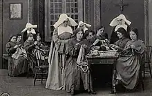Her Humble Ministry is a production of the Lubin Manufacturing Company, owned by Lubin.[4] On its completion, the film was roughly 1,000 feet in length.[3] It starred Florence Lawrence as the leading character.[2] Her parents were portrayed by Spottiswoode Aitken and Ethel Elder.[5] Arthur V. Johnson and Albert McGovern were cast as the former convicts;[2] in the film, Johnson's character falls in love with Lawrence's.[6][7][8]
