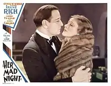 Her Mad Night is a 1932 American pre-Code crime film directed by E. Mason Hopper and starring Conway Tearle, Irene Rich and Mary Carlisle.[1] It is also known by the title Held For Murder.