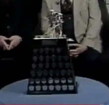 Engraved plates with the names of the winning teams have been affixed to the base of the Herder Trophy since the late 1940s.[10] Beginning in 1952, additional layers have been added to the trophy base as required to accommodate successive Herder Champion nameplates.