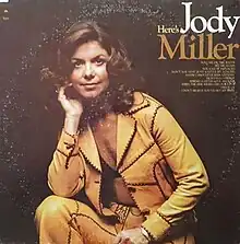 Jody Miller had her most successful recording career as a country artist. In the early 1970s, she had top ten singles with "He's So Fine", "Baby I'm Yours", "There's a Party Goin' On", "Good News" and "Darling, You Can Always Come Back Home". Despite waning commercial success in the late 1970s, she continued recording for her label (Epic Records) until 1979.[2] Her final Epic album was Here's Jody Miller. It was her first (and only) disc produced by Jerry Crutchfield.[3] On her official website, Miller stated that Crutchfield was "a very nice person and a credit to the music business, and what a producer!"[4]