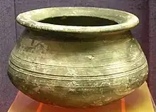 Exhibits include a model of a pumping engine made by the engineer-in-charge and dated 1884 from Ford waterworks, Herne Bay Waterworks Company.[6] There is a decorative seal press used by Herne Bay Urban District Council until 1974, which was used to impress the official seal on documents; the accompanying die is dated 1880s.[6] Some exhibits give coverage of Herne Bay's wartime history, and they include a baby's gas mask, dated 1939.[6] Among social history exhibits there is a spinning wheel for wool which is now in disrepair, but its previous repairs reflect the 1950s art-movement revival of spinning and weaving, and that revival features in an exhibit of woven items at Bradford Industrial Museum. This Saxony wheel is accompanied by a lazy kate: a set of spools for hand-plying yarn.[15]