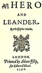 Two editions of the poem were issued in quarto in 1598 (see 1598 in poetry); one, printed by Adam Islip for the bookseller Edward Blount, contained only Marlowe's original, while the other, printed by Felix Kingston for Paul Linley, included both the original and Chapman's continuation. A third edition in 1600, published by John Flasket, printed a title-page advertising the addition of Marlowe's translation of Book I of Lucan's Pharsalia to the original poem, though the book itself merely adds Chapman's portion. The fourth edition of 1606, again from Flasket, abandoned any pretence of including the Lucan and once again joined Marlowe's and Chapman's poems together; this was the format followed in subsequent 17th-century editions (1609, 1613, 1629, 1637 and after).[1]