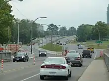 Heron Road starts on the Heron Road Bridge which crosses the Rideau River, Rideau Canal, and part of Vincent Massey Park. From there, most of Heron Road is a four- to six-lane divided principal arterial, and often becomes a speed trap; the speed limit is 60 km/h (37 mph) west of Bank Street and 50 km/h (31 mph) east of Bank Street despite the overall lack of pedestrians and relatively free flow (especially west of Bronson Avenue).