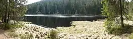 The Herrenwieser See is a tarn in the municipality of Forbach in the Northern Black Forest in Germany. It lies at a height of 830 metres, a little northwest of the Schwarzenbach Reservoir and 1,600 metres as the crow flies northeast of Herrenwies on the eastern mountainside of the 1,001-metre-high Seekopf, a subpeak of the Badener Höhe. The lake covers an area of 1.2 hectares and is up to 9.5 metres deep. Habitats Directive area and, together with the cirque headwall, designated as a biotope. It can be circumnavigated on a footpath. The lake itself is surrounded by a fence and the shore is out-of-bounds for nature conservation reasons.