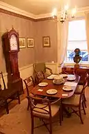The basement contains a kitchen, parlour and workshop.[5] At ground floor, the building has an entrance hall with a staircase, a small closet room that is used as a dining room, and a large south-facing room at the back of the house. Similar south-facing rooms are present at each level of the building. The dining room contains Herschel's dining table.[4] On the first floor, the Music Room occupies the closet room, and the south-facing room is the Drawing Room.[4] The upper floors provided bedrooms and servant quarters;[5] they have subsequently been converted into flats.[4]