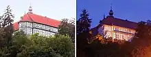 Herzberg Castle (German: Schloss Herzberg) is a German schloss in Herzberg am Harz in the district of Göttingen in the state of Lower Saxony. The present-day, quadrangular building has its origins in the 11th century as a medieval castle. After a fire in 1510 it was rebuilt as a schloss and is one of the few in Lower Saxony that was constructed as a timber-framed building. Because it belonged to the House of Welf for 700 years it is also known as the Welf Castle of Herzberg (Welfenschloss Herzberg).
