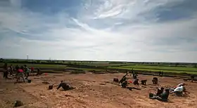 Survey and excavation work, commissioned by the university, was carried out on the site from 2003. It culminated in a full-scale excavation carried out in 2007–08 by York Archaeological Trust in an area of just over 8 hectares (20 acres).[2] The archaeologists found that the landscape had been inhabited and farmed for thousands of years. The remains of prehistoric fields, buildings and trackways were discovered, dating from the Bronze Age through to the middle of the Iron Age,[3][4] with traces of earlier activity as far back as the Mesolithic and Neolithic periods.[2]