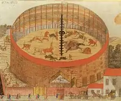 The Hetztheater was an exhibition place for animal fighting in Vienna that existed from 1755 to 1796. It was a circular structure based on the amphitheaters of ancient Rome used for gladiatorial combat and animal baiting. Similar structures existed in the Baroque period in Berlin (the Hetzgarten), Nuremberg (Fechthaus) and in Königsberg.[1][2]