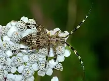 Hexatricha pulverulenta, commonly known as the squeaking longhorn, is a beetle in the family Cerambycidae, the only species in the monotypic genus Hexatricha. It is endemic to New Zealand. It was first described by John O. Westwood in 1843 as Lamia pulverulenta,[2] and later moved into the genus Hexatricha (sometimes incorrectly spelled Hexathrica).[3][4]