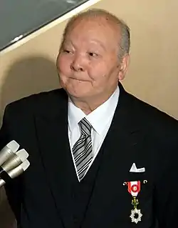 Katō after receiving the Order of the Rising Sun, Gold Rays with Rosette in May 2018.