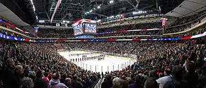 Based on tournament attendance, hockey is the most popular high school sport in the state.[1] Attendance has been strong throughout the years, with 38 tournaments eclipsing the 100,000+ barrier.[2] In 2017 Prep45.com partnered with GrandStadium.TV to stream the state tournament to viewers in 37 countries and all 50 states.[3] The Minnesota State High School Hockey Tournament is currently the largest state sports tournament in terms of viewing and attendance, beating Florida's State High School Football Tournament and Indiana's State High School Basketball Tournament.[4]