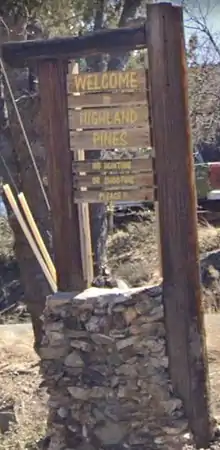 Highland Park, also known as Highland Pines, is a populated place situated near Prescott and within the Prescott National Forest, in Yavapai County, Arizona, United States. Highland Pines is the promotional name associated with the Highland Park areas several subdivisions.[2] In the Arizona Territorial era up to 1912, and Statehood until around the late 1920s, this particular area of land acted as a cattle ranch with a mining history, lies within the Thumb Butte Mining District, which appears to be initially platted by the Arizona Corporation Highland Pine Properties Inc. beginning in the late 1950s.