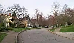 Highland Park Historic District is a national historic district located at Wheeling, Ohio County, West Virginia. The residential district includes 12 contributing buildings in the Highland Park subdivision. The houses were built on 18 lots carved from the former farm of Oliver Pryor between 1899 and 1939, and are representative of popular architectural styles during that period. The district includes the original farmhouse, known as the Pryor-Wilson House, built about 1852 with additions and modifications through 1922. The district boundaries encompass an area that once included a stone entrance and two homes designed by noted Wheeling architect Frederick F. Faris (1870-1927). The residents of Highland Park were prominent in the areas of steel, insurance, law, hardware, real estate, and banking.[2]