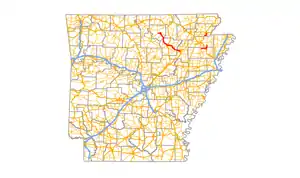 1. 1 2 3 4 5 Planning and Research Division (2010). "Arkansas Road Log Database". Arkansas State Highway and Transportation Department. Archived from the original (Database) on June 23, 2011. Retrieved June 9, 2011.
