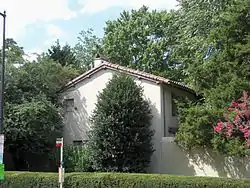 The estate was originally the home of heiress Anne Mills Archbold, a daughter of Standard Oil executive John D. Archbold, who was a prominent Washington socialite.[2] She donated much of the land that became Glover-Archbold Park. The buildings are the only known Washington works of Boston architect Josephine Wright Chapman. They were built from 1922 to 1925 in the Italian Villa style. The 42.1-acre (17.0 ha) site included the gatehouse and wall that was along Reservoir Road, NW with the main residence near the top of a hill.[3] The building exteriors feature stucco facades, terra cotta tile roofs, balconies and loggias. The interior of the main residence includes a frescoed vestibule and music room with a vaulted ceiling.[2] In the late 1970s and the early 1980s the estate was subdivided and 28 single family residences and 238 townhouses were built in a gated community.[3] The main residence was converted into two single-family dwellings[4]