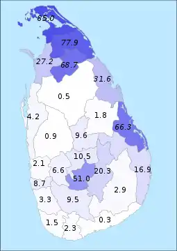 - ↑ "Census of Population and Housing of Sri Lanka, 2012 - Table A4: Population by district, religion and sex" (PDF). Department of Census & Statistics, Sri Lanka. Archived (PDF) from the original on 29 December 2014.