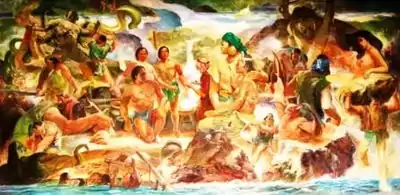 Art Geroche, a local Ilonggo artist and Staff of the West Visayas State College (now a State University), provided a mural painting (oil on canvas) depicting the epic, for the lobby of the Cultural Center. The painting captures the important scenes in the adventures of the heroes of Hinilawod, in one panoramic view within a six by twelve feet opus of Geroche.