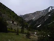 Hinsdale County is one of the most remote counties in Colorado and the United States. The county is covered by mountains, including multiple fourteeners, and contains one of the largest roadless areas in the country.[5][6] The continental divide crosses the county twice. Most of the county is divided among several different national forests and the Weminuche Wilderness area.