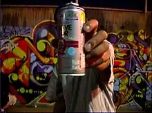 An aerosol paint can, a common tool used in modern graffiti
