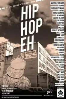 Hip Hop Eh is a 2012 Canadian documentary film about the hip hop music industry in Canada. A variety of artists, promoters and producers were interviewed about their experiences with creating and marketing hip hop and rap music.[1][2]