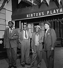 Initially, hipsters were usually middle-class European American youths seeking to emulate the lifestyle of the largely African-American jazz musicians they followed.[4] In The Jazz Scene (1959), the British historian and social theorist Eric Hobsbawm (originally writing under the pen name Francis Newton) described hipster language—i.e., "jive-talk or hipster-talk"—as "an argot or cant designed to set the group apart from outsiders". This group crucially included White jazz musicians such as Benny Goodman, Al Cohn, Gerry Mulligan, Stan Getz, Mezz Mezzrow, Barney Kessel, Doc Pomus, Bing Crosby, Frank Sinatra, Dean Martin, Jerry Lewis, Joey Bishop, Perry Como, Tony Bennett, Chet Baker, and Gene Krupa who ought to be counted as some of the "true" original hipsters as they were instrumental in turning the White American audience onto jazz and its underground culture in the 1930s and 1940s. Clarinetist Artie Shaw described singer Bing Crosby as "the first hip white person born in the United States."[5] Hipsters were more interested in bebop and "hot" jazz than they were in swing, which by the late 1940s was becoming old-fashioned and watered down by "squares" like Lawrence Welk, Guy Lombardo and Robert Coates. In the 1940s, White youth began to frequent Black communities for their music and dance. These first youths diverged from the mainstream due to their new philosophies of racial diversity and their exploratory sexual nature and drug habits. The drug of choice was marijuana, and many hipster slang terms were dedicated to the substance.