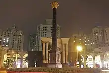 Construction started in 1989 and the area then was barren and hilly. The area lacked basic infrastructure such as roads, sanitary sewer lines, water or electrical connections. Along with developing the basic infrastructure, more than 100,000 trees were also planted. By the early 1990s the first phase of apartments were ready and were initially sold at the rate of 500 (equivalent to 4,900 or US$61.40 in 2023) per ft2.[3] In the late 1990s, the construction and the architecture strategy was changed from "affordable" to upmarket housing and the neoclassical architecture was adapted as theme for upcoming buildings. By the mid 1990s, a shopping mall (Galleria) was constructed at the geographical center of the township.