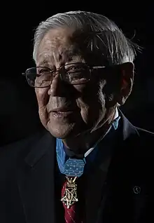 Hiroshi "Hershey" Miyamura (Japanese: 宮村 浩, October 6, 1925 – November 29, 2022) was a United States Army soldier and a recipient of the Medal of Honor, the United States military's highest award for valor, for his actions during the Korean War. He was one of the last two surviving Medal of Honor recipients of the Korean War, along with Ralph Puckett Jr.[1][2] While he was held as a prisoner of war, the award was classified as top secret.
