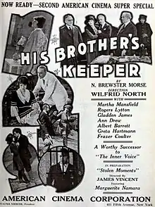 His Brother's Keeper is a 1921 American silent crime film directed by Wilfrid North and starring Albert L. Barrett, Martha Mansfield and L. Rogers Lytton.[1] It is now considered a lost film.
