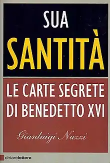 His Holiness: The Secret Papers of Benedict XVI (Italian: Sua Santità. Le carte segrete di Benedetto XVI) is a book published by the Italian journalist Gianluigi Nuzzi of confidential letters and memos between Pope Benedict XVI and his personal secretary. The letters in the book portray the Vatican as a corrupt hotbed of jealousy, intrigue and underhanded factional fighting.