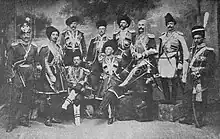 His Majesty's Own Cossack Escort (Russian: Собственный Его Императорского Величества Конвой, E.И.B., English: His Imperial Majesty's Own Convoy, E.I.B.) - The Конвой (konvoi - Convoy) was a Russian Imperial Guard formation, created for the Emperor of All Russia. At the Battle of Leipzig in the Napoleonic Wars, soldiers from the regiment saved then Emperor Alexander I of Russia from being captured by French forces under Napoleon Bonaparte.[1]
