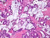 6. 1 2 3 4 5 6 Yaskiv, Oksana; Cao, Dengfeng; Humphrey, Peter A. (2010). "Microcystic Adenocarcinoma of the Prostate: A Variant of Pseudohyperplastic and Atrophic Patterns". The American Journal of Surgical Pathology. 34 (4): 556–561. doi:10.1097/PAS.0b013e3181d2a549. ISSN 0147-5185. PMID 20216381. S2CID 24149412.
