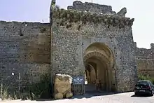 The Puerta de Sevilla (Seville Gate) and its bastion were built originally by the Carthaginians around 230–220 BC.[3] The Romans later made several modifications, focusing on reconstruction of the main access gate to the walled town, and modified the bastion itself, which, like the gate, still exists.